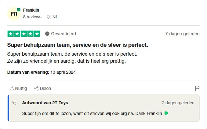 If you have a question: email me at INFO@2TTOYS.NL or come to our store in Den Bosch