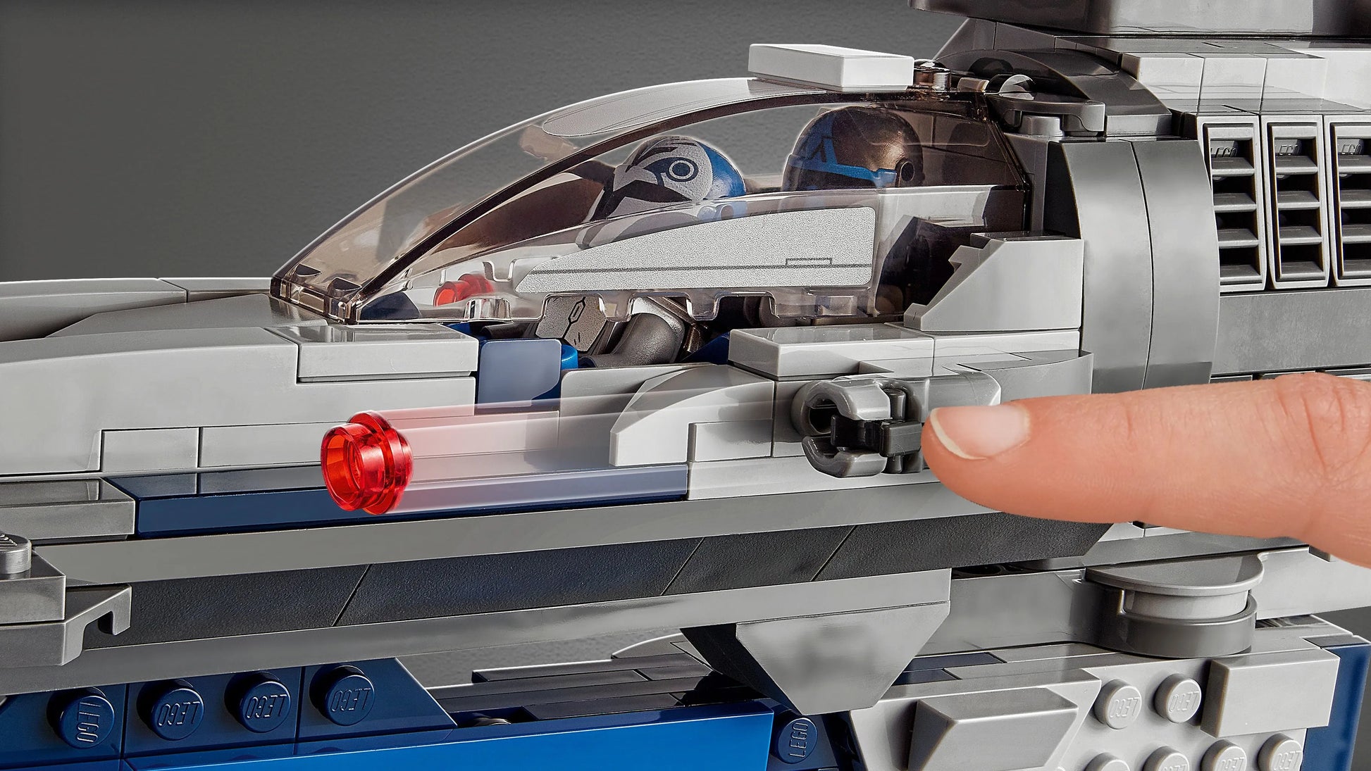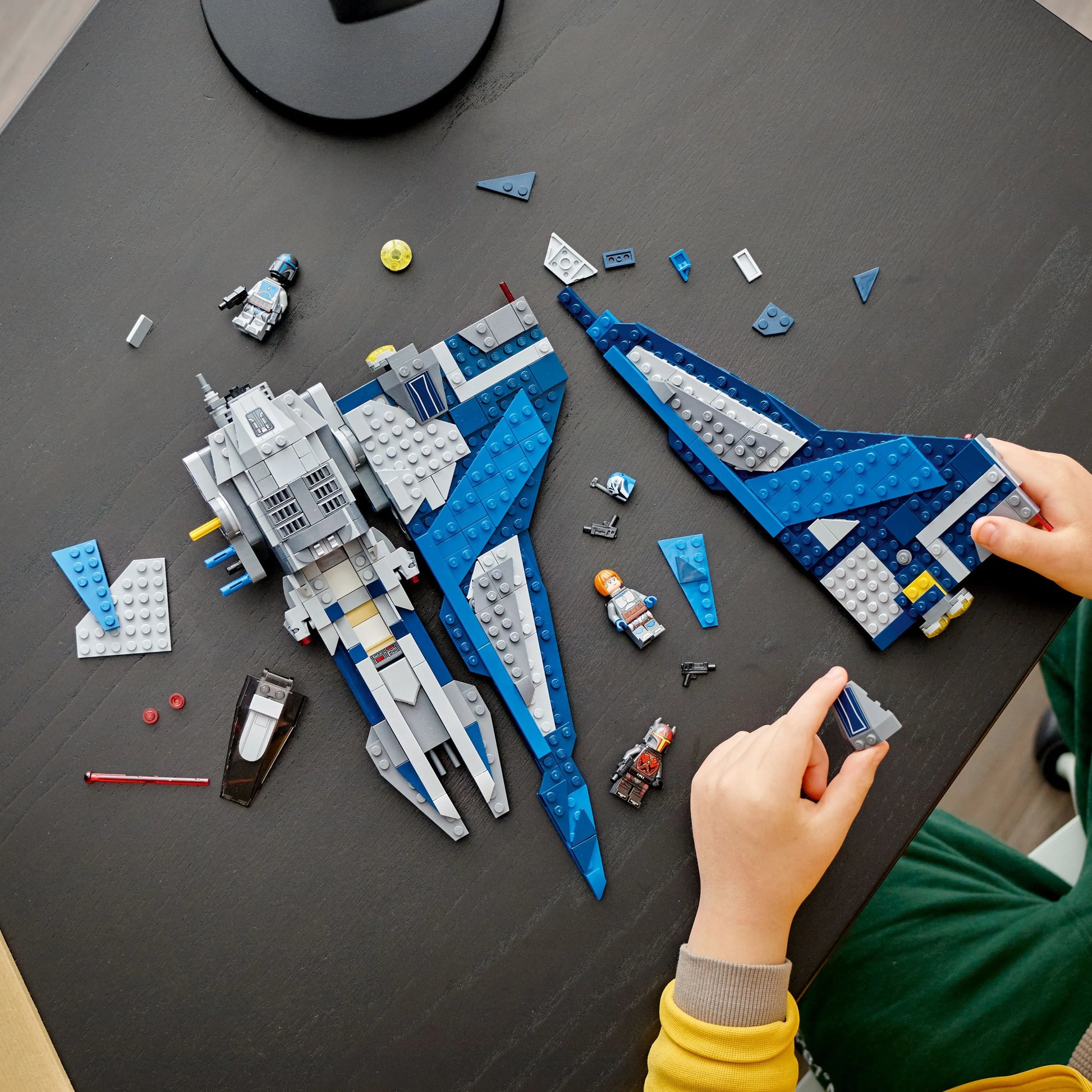 Kids can build a detailed LEGO model of a Mandalorian Starfighter (75316) and role-play action scenes Star Wars : Reenacting The Clone Wars. The model features a cockpit for 2 LEGO minifigures, 2 stud shooters, 2 spring-loaded shooters and adjustable wings – rotate them vertically to land or fold them down and rotate the cockpit for a streamlined flying shape.