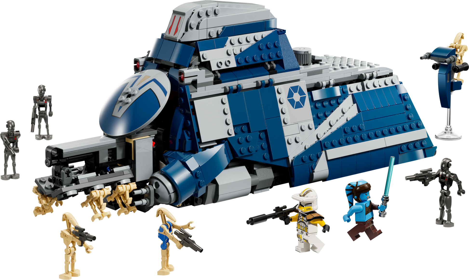 Authentieke Details en Speelfuncties: De MTT is boordevol authentieke details uit The Clone Wars. De opvouwbare zijpanelen bieden gemakkelijke toegang tot het gedetailleerde interieur, inclusief een pilotencockpit. Een STAP speeder kan worden opgeborgen in het achtercompartiment en twee noppenschieters zorgen voor extra vuurkracht. Verborgen wielen zorgen voor een soepele beweging over vlakke oppervlakken, waardoor de MTT klaar is voor elke aanval.