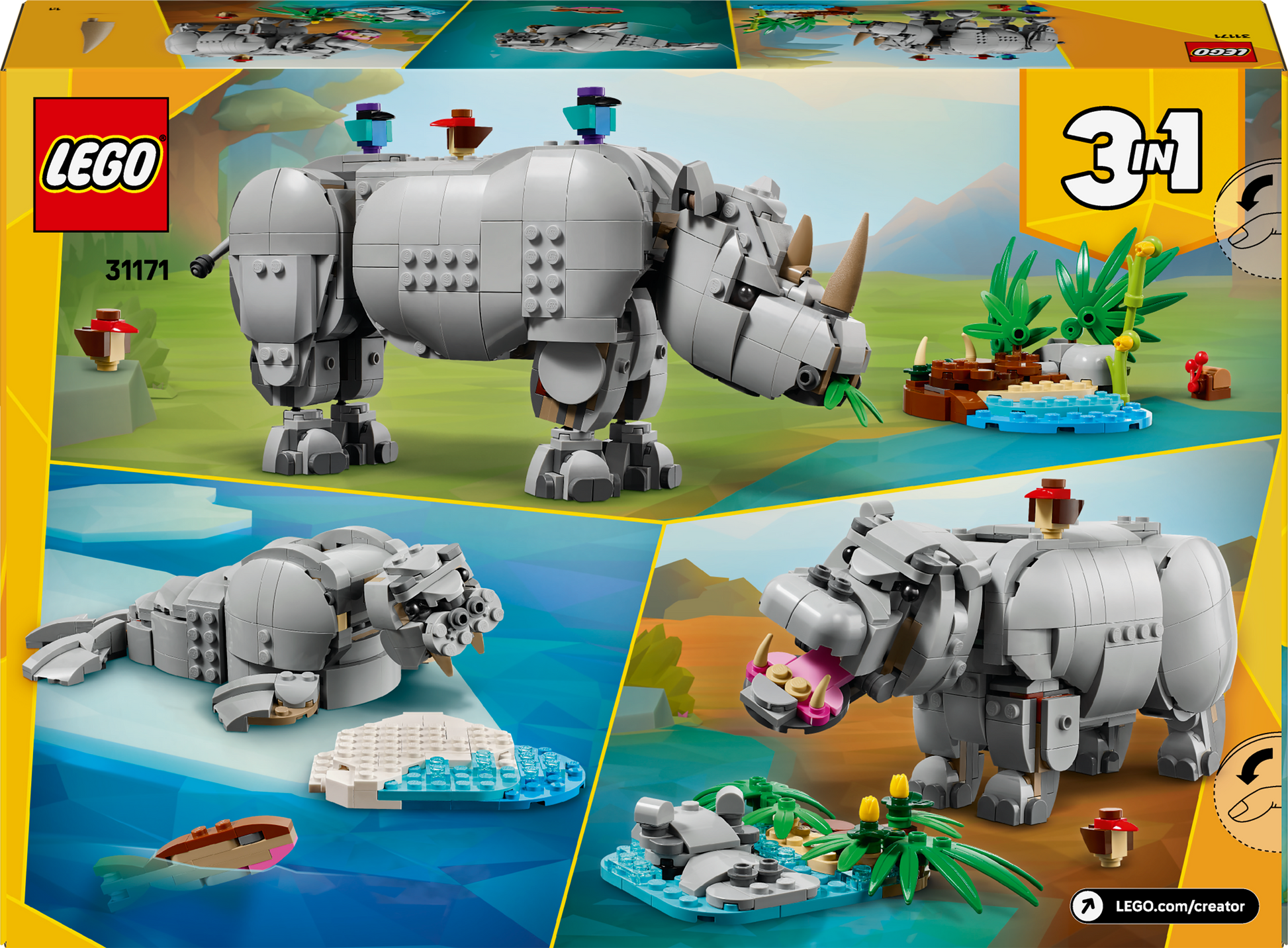 LEGO 31171 Neushoorn, Bouw 3 wilde dieren in 1 set!