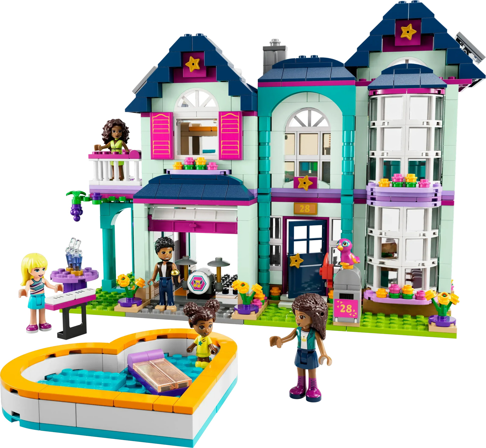De set is inclusief 5 LEGO Friends minipoppetjes, waaronder Andrea's zusje Liz (een micropoppetje dat nieuw is vanaf januari 2021), om het gezinsleven op diverse manieren na te spelen. Laat kinderen kennismaken met Heartlake City, waar ze vrienden zullen vinden die net zo zijn alszij!