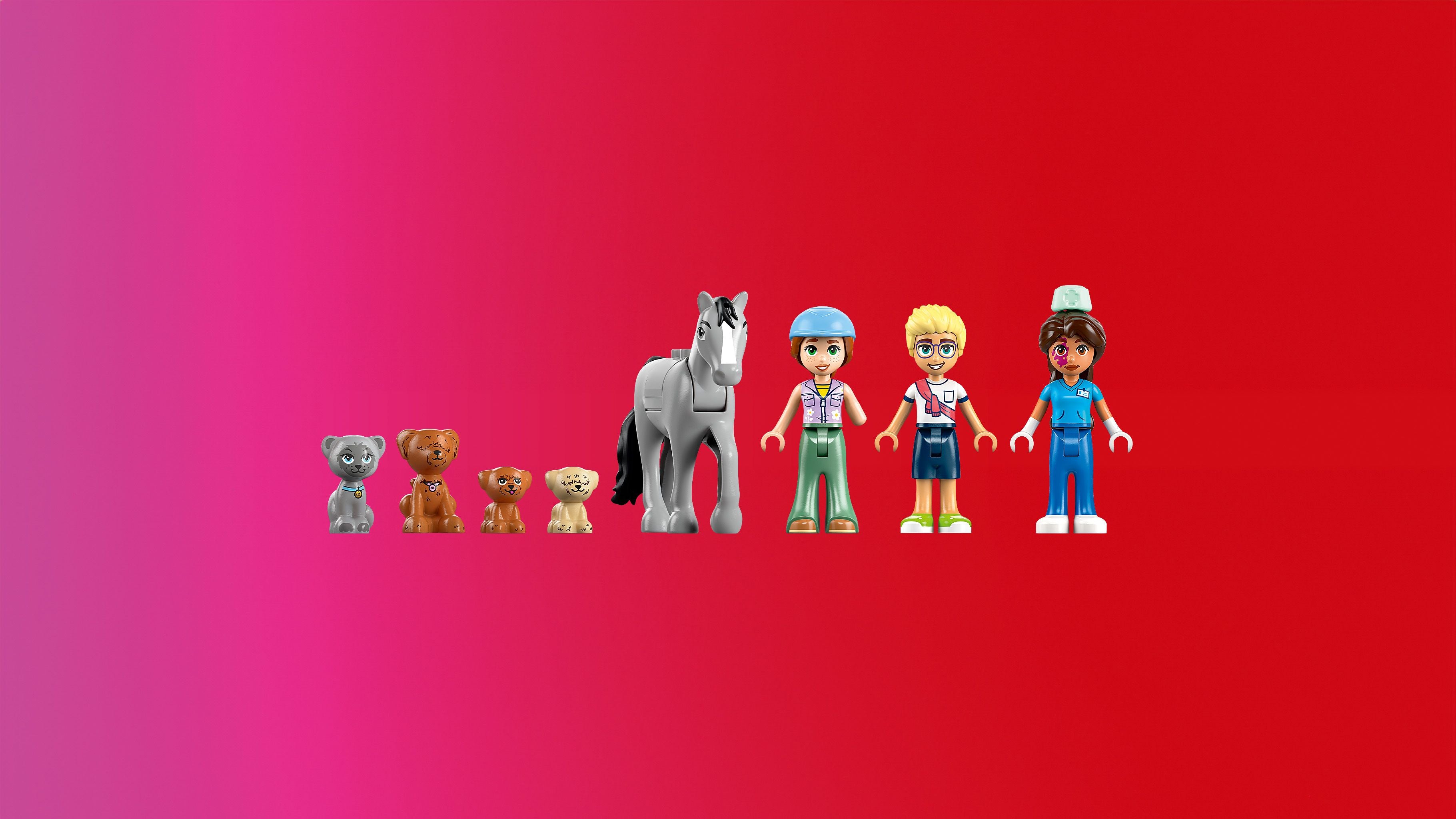 - Inclusief dieren: Naast de minifiguurtjes van een dierenarts en een boer, zitten er ook een paard, een kalf en een hond bij.